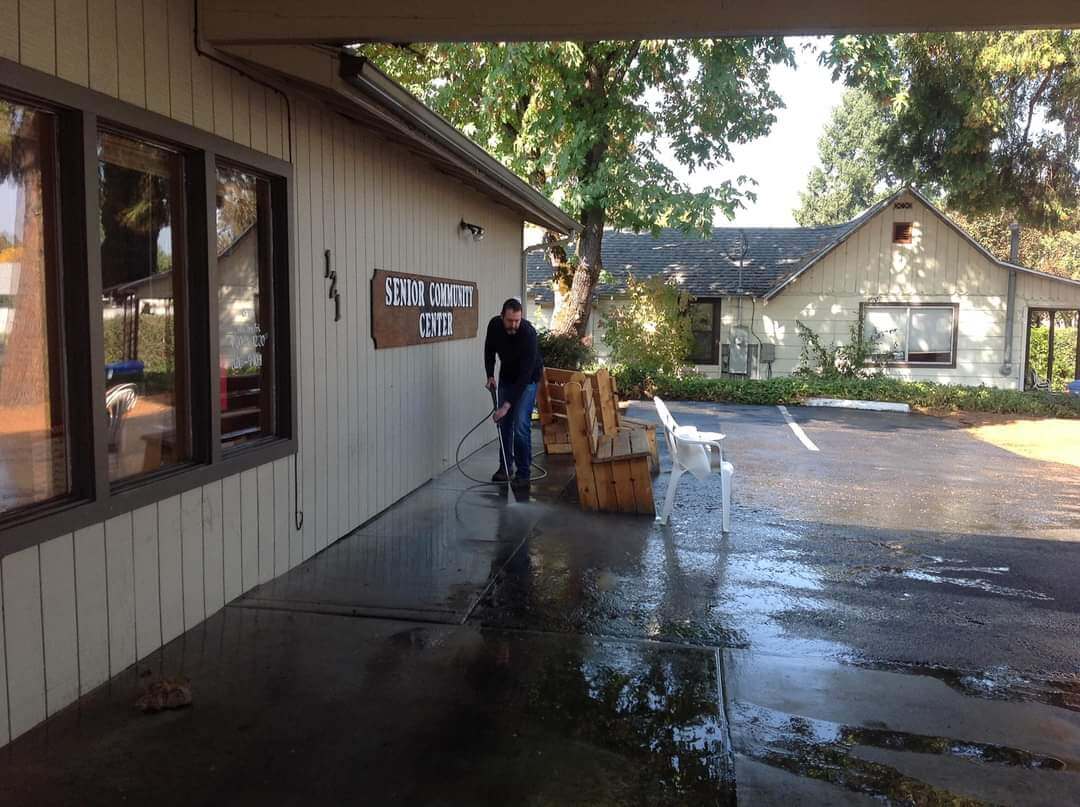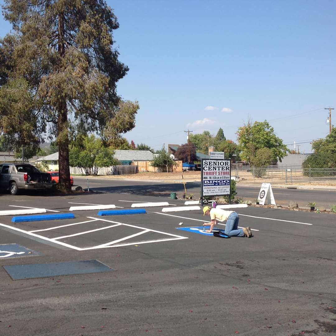 Eagle Point Senior Center February 27, 2022 by Vanessa Jones Parking lot cleanup and restoration work party for the Eagle Point Senior Center. We spent a Saturday cleaning, sweeping, power washing, weeding and painting the parking lot area of the Eagle Point Senior Center.
